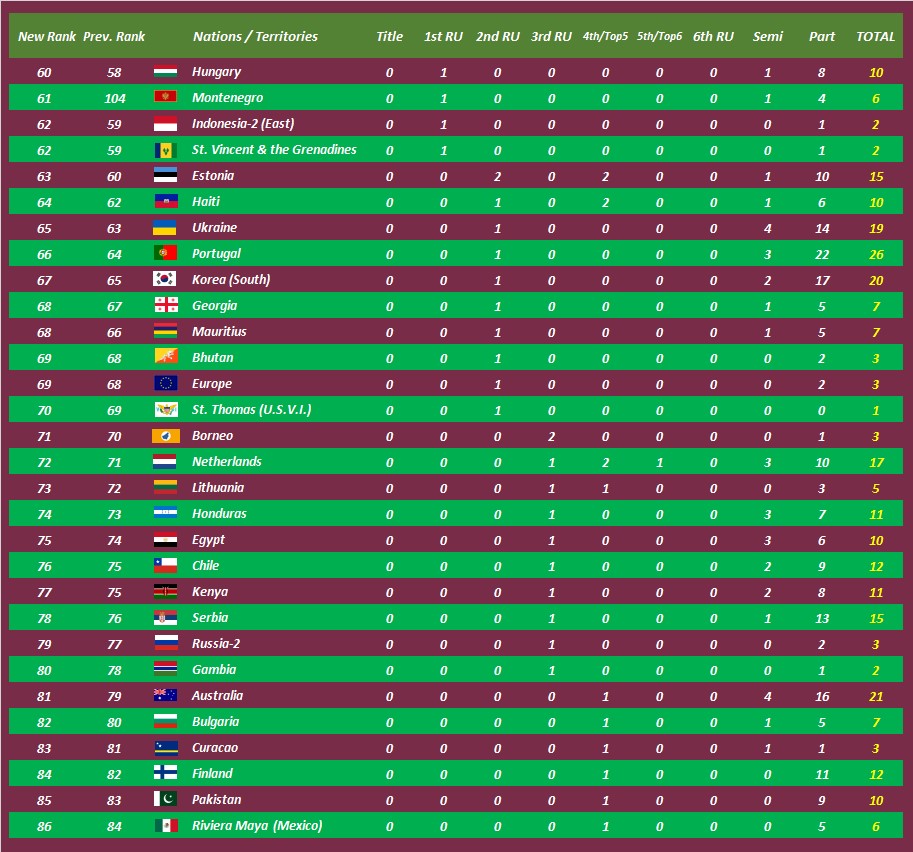 This year, Puerto Rico dethroned Vietnam for 3rd place with 5 pageant titles in 2023.